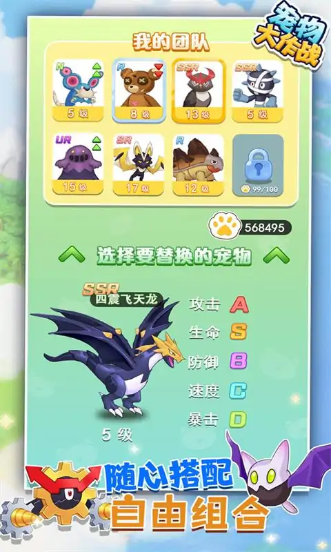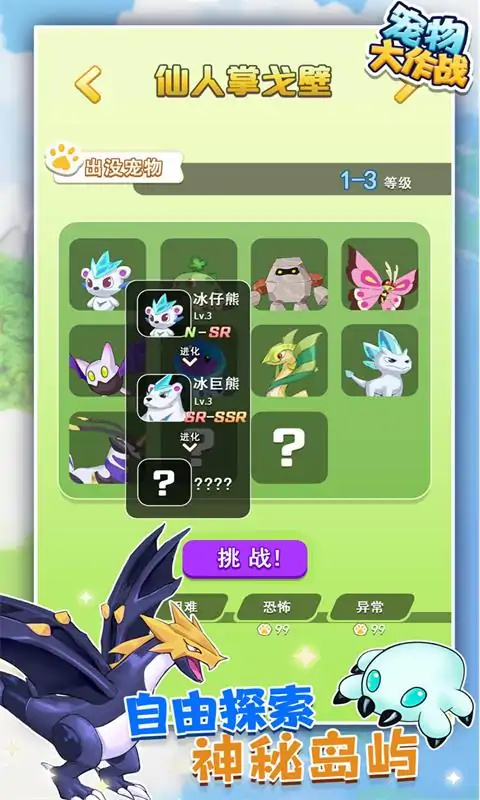 《宠物大作战》是一款以收集、培育宠物为主题的自由探险游戏。在神奥传说中,宠物精灵是生活在世界的既神秘又不可思议的生物,已知的宠物精灵已有上千种。在天空中、大海里、高山上、森林中、草原上、城镇里,都可以见到宠物精灵的身影。有些宝可梦和人类友好地居住在一起;有些野生宝可梦则栖息于草丛、洞窟或是大海里,关于它们的生态仍然存在着许多人类未能破解的谜团。 与成千上万探险家一样,你与自己的宠物精灵也踏上了神奥传说的土地上,开启了一段奇妙幻想的旅程……冒险的旅途并不孤单,爱宠小队为你保驾护航;宠物精灵随处可见,你会如何应对?高自由度随心搭配,为你打造专属队伍;收集道具获取buff加持,驯服灵宠得到伙伴协助;神秘精灵图鉴等你来解锁,多种进化形态等你来揭秘!广袤大地,实力才是王道;探索之旅,脚步永不停歇!