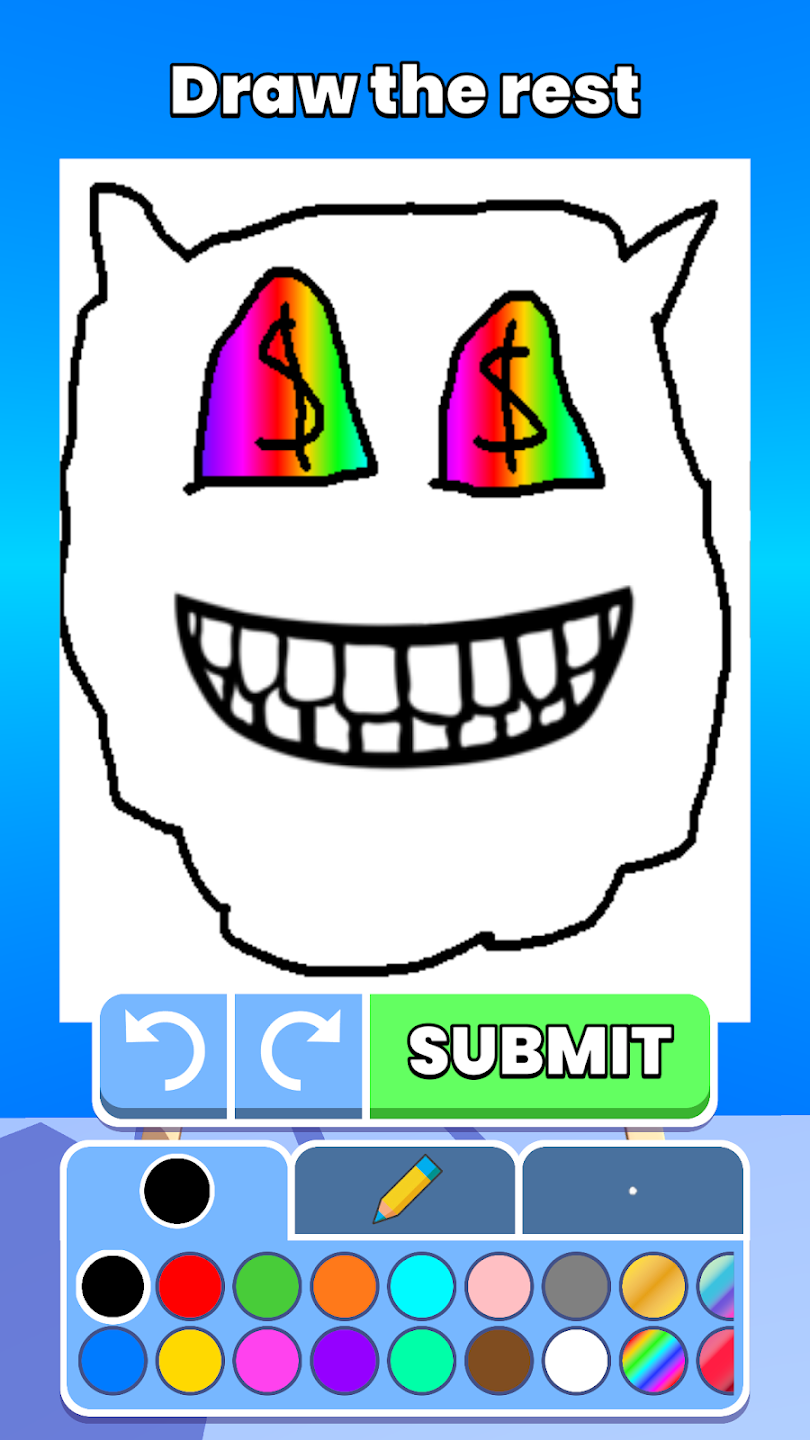 画出剩下的并制作一个新的故事。在这个创意绘图游戏中对阵朋友们竞争。投票对其他参赛者的图纸,看看谁得最好