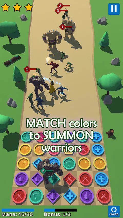匹配颜色和召唤史诗中世纪战士,谁将与敌人和怪物争夺和捍卫。 Crush Orcs,Goblins,Bryits,亡灵僵尸,骷髅和其他怪物。沉浸在幻想3D世界里,带着幽灵和魔法。 游戏功能: •史诗匹配-3战斗 匹配-3拼图和战略战斗游戏的混合物 - 简单随便! •幻想英雄 引导你的中世纪军队,传说中的英雄和战士队来击败敌人!命令一个大战场! •收集和培训强大的军队 •3D神奇的世界 探索庞大的大陆,充满美丽的地方,危险的怪物和邪恶的敌人