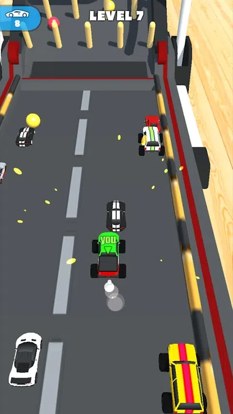 跑在跑步机上。 控制你的车把它放在跑步机上。 注意障碍物,他们会撞到车上