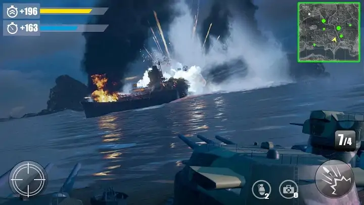 全方位的导弹轰炸,躲过漫天密集的弹道 在海上精准打击,给予敌人致命一击 轰炸所有敌人,成为新的海王! 游戏特点: 令人惊叹的图形和逼真的战斗环境:真实的水上战斗场景,独具特色的战斗方式,简单的操作让你很快上手这款游戏! 强大的战舰升级系统: 游戏内,战舰种类多样,各种各样战舰任你挑选,配合各种升级配置,不同等级战舰有不同的属性武器,高等级战舰有着独特的无人机支援,自动导航导弹,全方位防护罩,让你体验真正的战斗快感!让你无敌于这个海域! 游戏关卡多样,近百个不同难度关卡,各种极限的挑战,更有丰厚奖励等你来拿! 游戏难度随关卡递增,奖励也随之递增,更有丰厚奖励的BOSS关卡等你挑战! 无需wifi,随时随地把玩! 游戏包体小,方便下载 适合所有安卓4.0以上的机型