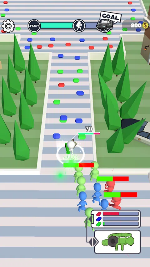 拿起与僵尸相同颜色的子弹并射击它们以清除舞台! 刷你的角色并射击数百个僵尸。只有相同颜色的子弹将在僵尸上工作。 避免僵尸并收集子弹成功击败他们! 简单直观的游戏玩法与上瘾的游戏机械师