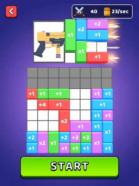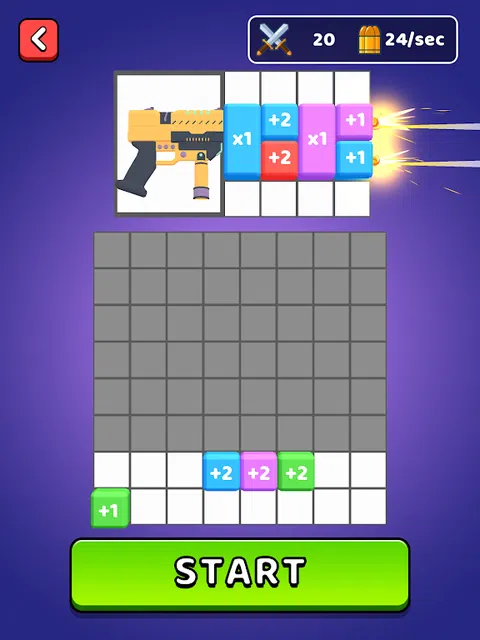 将块组合在一起并获得下一个更高的价值! 将块放在武器上以升级它! 射击僵尸
