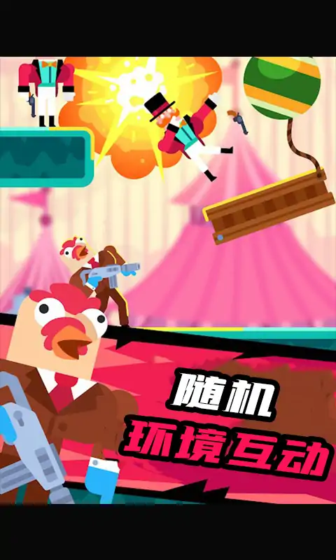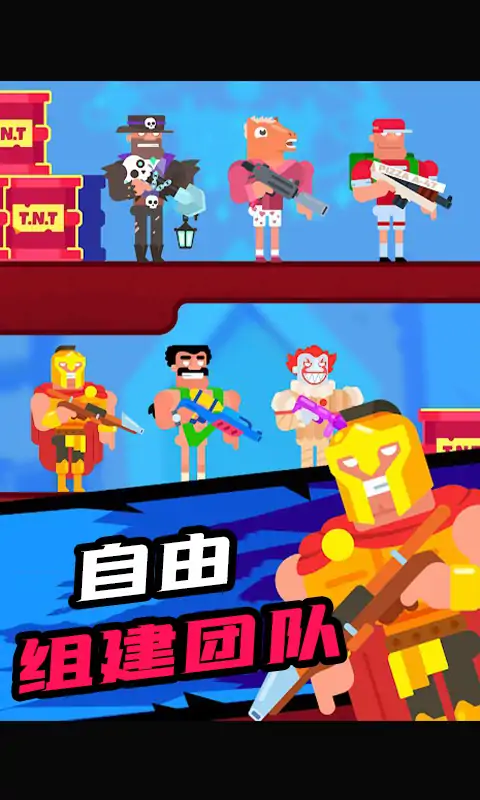 超多搞怪角色队伍,消灭你眼前的敌人!超多武器关卡,各种枪械,黄金ak、火箭筒、手榴弹,只要你想到我们都有,只为了解救人质,消灭敌人。