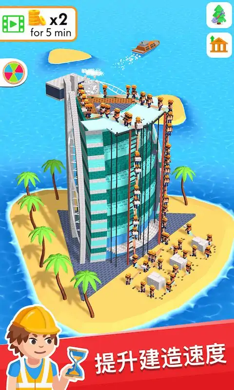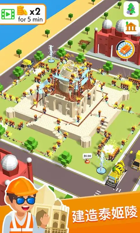 《盖楼我贼溜》是一款休闲放置游戏,在这里你要做的就是建造一座又一座大楼,从简单的基础房屋开始,到世界上最著名的建筑,创造建筑帝国。 游戏特色: - 雇佣工人赚更多的钱,更快的完成建筑的搭建工作 - 成就感——在工人一砖一瓦的搭建中逐渐放松自己 - 给搭建好的建筑添加装饰物,提升收益的同时增添乐趣 - 在世界各地建造著名的建筑:北京天坛、比萨斜塔、印度泰姬陵、帝国大厦…… - 解锁每个建筑都会给你一篇小小的新奇科普 - 召唤盖楼超人,飞速盖楼的感受亲测贼爽~ - 使用疯狂的道具来加快发展业务