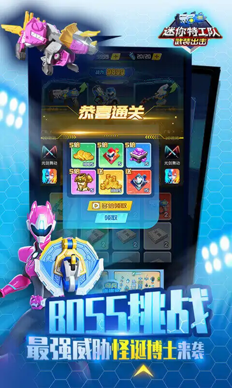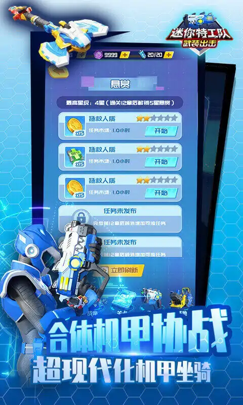 迷你特工队武装出击游戏特色: 1、多种不同的游戏任务,可以给玩家带来更多的冒险与挑战。 2、非常刺激的迷你保卫挑战,各种不同的挑战任务,可以让游戏更加的精彩。 3、游戏中玩家需要不断的提高自己的技能,去参加更多不同的战斗。 迷你特工队武装出击游戏亮点: 1、不断的收集金币并升级迷你特工队的装备,去占领更多的地区。 2、玩家还需要不断的升级武器机甲,让它变得更大,速度更快。 3、建造自己的迷你特工队机甲和大型武器,帮助自己快速的完成关卡任务。 迷你特工队武装出击游戏优势: 1、游戏过程中可以不断增加个人经验值,就能加入更强大的联盟战队。 2、通过战队过程中可以了解对手的弱点,尝试不同的机甲属性闯关也更加轻松。 3、丰富多变的玩法让你眼光缭乱,玩家也可以完整更多新模式玩法。