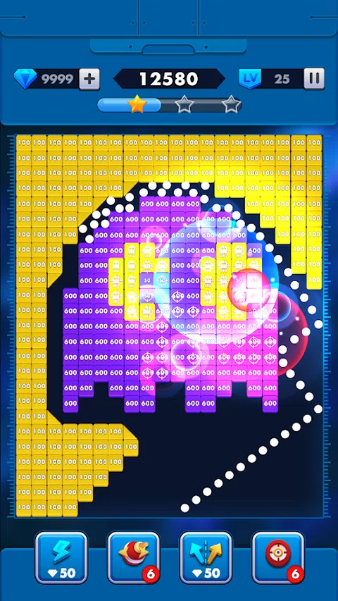 Bricks Breaker是一款经典的令人上瘾的太空风格的射击游戏。作为顶级的破砖游戏,《破砖者》拥有大量精心设计的砖块关卡和精美的砖块游戏建模。如果你喜欢碎砖游戏,《砖块与球》将是你最喜欢的碎砖游戏!这是一个有趣且富有挑战性的脑力游戏,它适合你的逻辑、敏锐的注意力和解决问题的技能。Bricks Breaker是一款真正的经典无时间限制的脑力游戏。每天玩Bricks Breaker,在这个令人上瘾的射击游戏中找到全新的射击体验。Bricks Breaker的目标是找到一个完美的角度,在尽可能少的镜头内清除这些木板,所以你需要发挥你机智的逻辑能力。使用不同的策略来击败不同的级别,并爆破所有的砖块!这些砖有着设计精美有趣的形状。解锁关卡,探索更多模式!为了让你的碎砖更有趣,我们将为你带来很多物品来帮助你清除所有的砖块。赢取独特的物品,以击败棘手的关卡,并使兴奋加倍!非常适合消磨时间或在旅途中玩耍(甚至离线!)。一旦你开始,你就不会想停下来!坚持下去,你就会把球轰向胜利!享受一款独特且快节奏的碎砖游戏,具有挑战性的关卡和丰富的乐趣!记住,你必须用球打碎尽可能多的砖块才能获得最高分数并通过关
