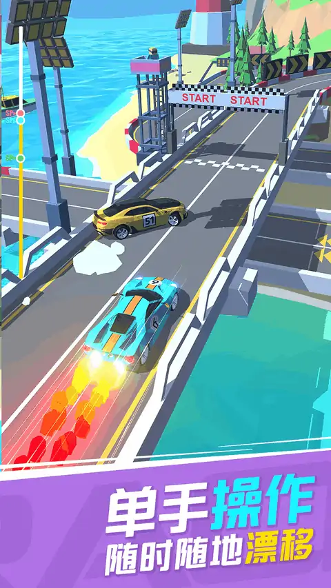 漂移飞车是一款备受关注的休闲赛车手游,你只需要一个手指就能轻松操作,完美漂移喷射氮气,还有几十辆豪车等你收集,和好友一决高下吧!