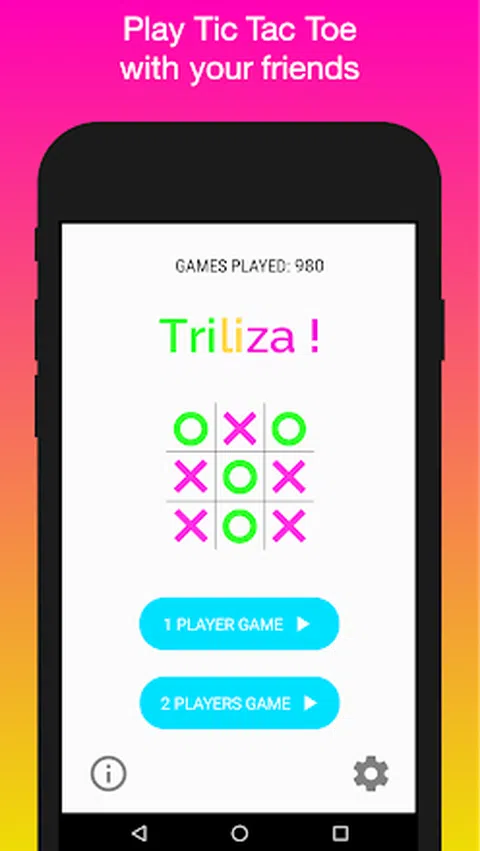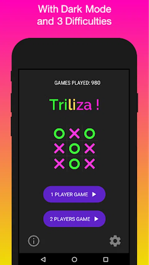 新更新3! Trillas是一个完美的方式来度过你的空闲时间。 停止浪费纸并拯救树木! 游戏功能: ★华丽的图形和颜色 ★3个难度(EASY,NORMAL,DISTANCE) ★两个游戏功能(一个球员 - 两名球员) ★暗模式和白天模式 ★设置页面设置暗模式,难度级别和声音。 ★文本显示总场 ★播放重复按钮 规则很简单!谁将会管理玩家放置三个相应的信号在水平,垂直或对角线系列赢得了比赛。开始播放您的设备上的三重完全免费的。 玩得开心
