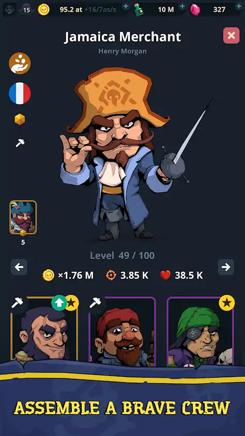 准备好海盗冒险! 黄金山正在等待。 组装一个勇敢的船员,爬上船上,并开始通过陆地和海上统治的方式。 每个海盗岛都充满了不同的企业,将为您带来利润。 接管造船厂,小酒馆,工厂,矿山和一切你可以。 升级它们以增加像海盗大亨一样的利润。 枪必须准备好! 你的每个敌人都想抢夺更好的业务。 与你勇敢的船员打他们,并显示谁是负责人! 管理你的海盗乐队:聘请海盗谁不仅可以参加战斗,但也可以在您的业务经理。 他们将带来更多的收入,因为海盗爱黄金。 领导你的海军。 不要忘记老海盗说:船员的一部分是船的一部分。 升级你的团队成员从简单的水手水手长,船长和进一步。 控制领土,扩大你在地球的各个角落的影响力:加勒比群岛,地中海,大洋洲等等。 你的舰队将是传奇