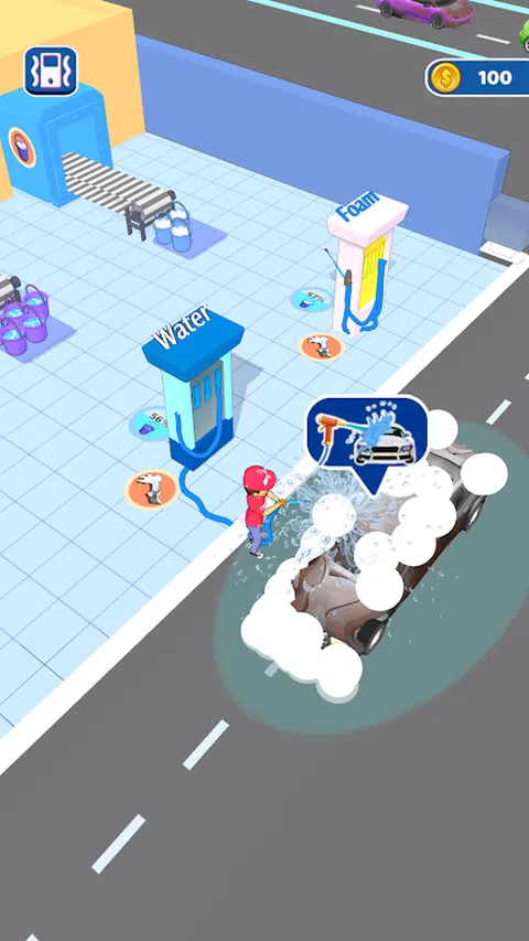 在这场比赛中,你经营一家洗车店,客户会把肮脏的汽车带到你的商店,你需要抱着软管洗他们赚钱。然后你可以解锁汽车维修并扩展您的商店吸引更多客户,终于建造您的洗车帝国