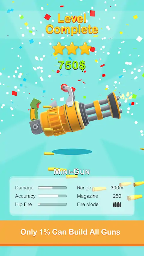 枪建设者是新一代的三维拼图游戏!接受命令,一步一步地制造出像拼图一样的枪,然后挣钱买新的工具。简单玩法:简单地把这些碎片拖到工作台上,制作出订购的枪,看看它是如何工作的