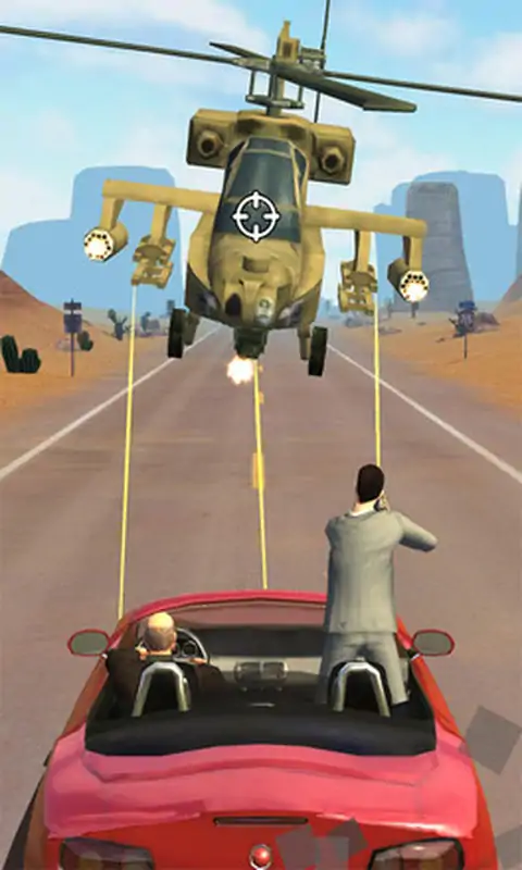 在公路上一边驰骋,一边与黑手党派出的敌人决一死战!你能在一波波敌人的攻击中生存下来,挺到最后吗?你必须快速反应,迅速瞄准敌人,才能在公路大枪战中胜出! 特色: 在路上遭遇各种类型的敌人 对战强大的黑手党boss?考验你的力量与技巧 多种攻击方式 ,使用敌人的炸弹与榴弹克敌制胜 充满惊喜,加入子弹慢速流动的火爆枪战,找出敌人弱点 你将在路上遭遇由黑手党驾驶的各类车辆。在激烈火爆的枪战中与跑车、肌肉车、越野车、吉普、四轮摩托等车辆对战! 精确瞄准以造成最大伤害。每台敌人车辆都有特定的伤害与子弹冲击点。仔细观察,巧用敌人的物品打击他们!