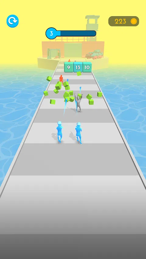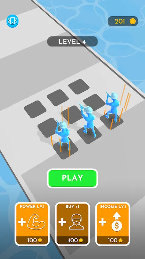 合并你的力量和胜利!赚取硬币,升级你的军队并击败敌人。小心块