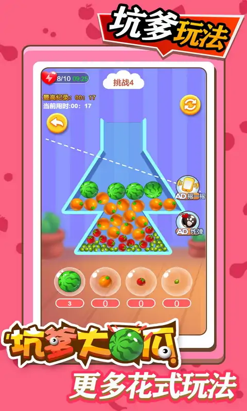 坑爹大西瓜游戏里面的玩法和内容是十分的到位,在进入到其中之后要做的就是好好的体验才会拥有最不错的过程,轻松自在的体验下,玩家是会沉浸其中的,保证是会满足到大家的,任何时候大家进入到这里面都将会获得不错的效果。