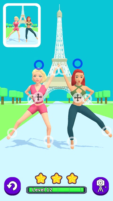 控制人物,摆出想要的姿势,获得3颗星。成为最强的摆造型大师。