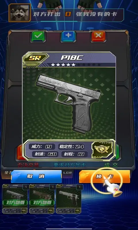 《我换卡最强》是一款以收集、交换吃鸡武器卡片为主的休闲游戏,在游戏中玩家可以通过抽卡的方式去搜集更多的吃鸡武器卡片,同时也可以通过与好友交换卡片,获得自己没有的卡片。游戏中有多种多样的武器卡片,更多游戏玩法等着你来解锁!心动就快来拿走你的超级卡片吧!