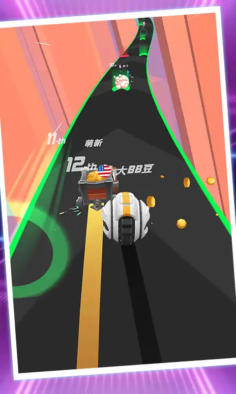 冲过每个加速箭头,不断提升速度 向前!向前!向前! 火热的节奏让人肾上腺素升高! 成为名副其实的第一,解锁更多的赛道和乐曲。 挑战无止尽!