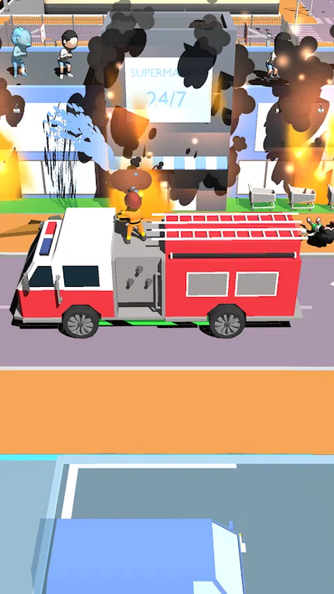 有火灾,人们需要帮助去医院并控制着火。 控制火灾和救助人员,帮助他们到达医院