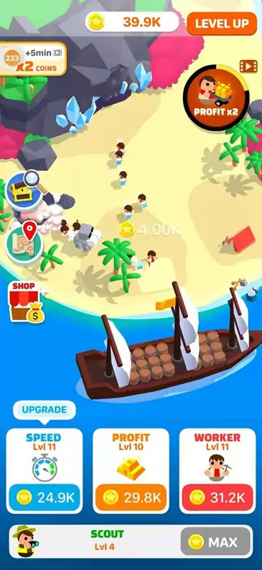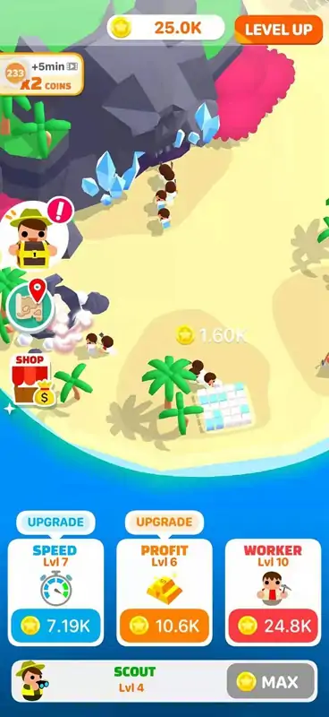 一直想成为一个定居者,发现新的土地,并从中获利?欢迎使用空闲资源管理器!游手好闲的探险家是一个游手好闲的游戏,超级容易玩,在那里你停靠在一个新的土地上,并雇用工人找到资源,赚取吨的钱!选择你的梦之队,提升它的技能,成为最好的定居者。我们希望你玩我们的游戏玩得开心!我们投入了很多热情,毫不犹豫地让我们得到一些反馈