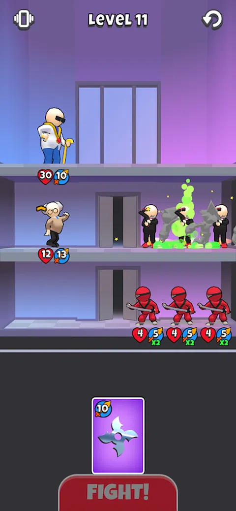 拿一堆战斗机,将它们放在塔楼的地板上。使用您的战术技能,因为每个决定都使您更接近胜利。使用缓冲区或奖金来加强您的部队