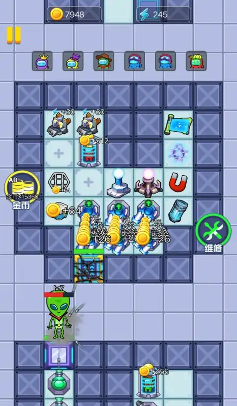 《快来躺平吧》是一款2D塔防小游戏。游戏中太空人需躲避外星人的追捕,寻找适合自己的宿舍躲避,并发展经济建造炮台,抵御外星人。游戏中太空人只可以在房间中的空地板上进行建造,太空人点击空地板后,出现建筑菜单。游戏中太空人需要根据自己当前的经济选择性建造建筑,发现一条符合自己发展的道路。太空人需要将外星人击败或者抵御至天亮方可获胜,反之外星抓到太空人则太空人失败。