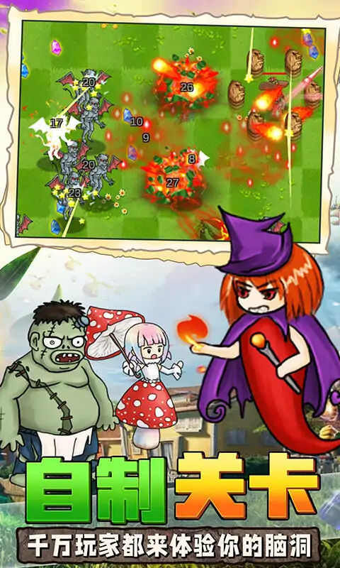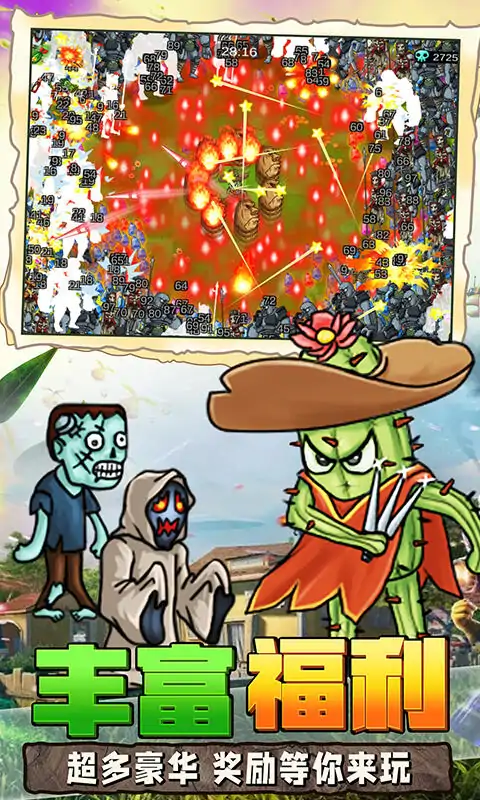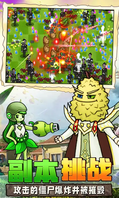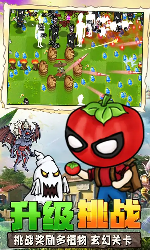 当您的家园此刻正受到大量外来物种的侵袭,挑战头目来获取奖励,您需要通过金币选择喜欢的角色进行抵御和保卫你的家园,在这里,有辣椒法师,西红小子,仙人掌,西瓜星人,甘蔗直男,榴莲王子等角色供您选择,您可以通过金币来点亮角色的天赋,还可以在游戏中选择你的技能对地方进行攻击,提升自己的技能,它们可以自动射击作战,把自己强化成强大的植物,进而达到更高的火力覆盖,甚至必须保护自己免受猖狂的僵尸的伤害!还有终极大boss在等着你,超多关卡等你来挑战!