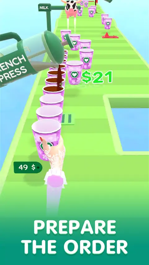 您想用自己的风格煮咖啡吗? 在屏幕上向左滑动以收集和控制咖啡杯。 用咖啡填充杯子,升级咖啡的味道。 尽可能多地咖啡,将其出售给客户以赚更多的钱