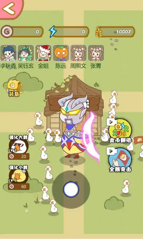 《暴躁大鹅》是一款拥有卡通画风的休闲益智的放置策略游戏,玩家在游戏中匹配玩家,选择游戏难度,在此期间,每个玩家都要守护自己的庄园,避免遭受成群结队的大鹅的袭击,游戏中的篱笆庄园通过随着时间增长的金币进行升级建造,还有麦穗道具升级高科技对抗大鹅,大鹅模式更是让你直接化身邪恶大鹅,屠龙出击,让我们守护自己的家园免受暴躁大鹅的侵袭吧!