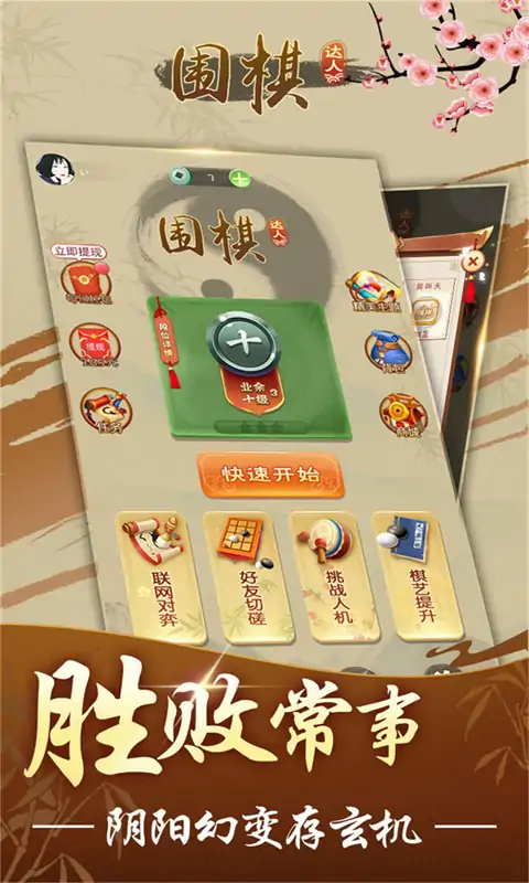 落子有声承国粹,弈飞无言下成蹊。 经典围棋游戏,高手如林,等你挑战! 对局双方各执一色棋子,黑先白后,交替下子,每次只能下一子。棋子下在棋盘上的交叉点上。棋子下定后,不得再向其他位置移动。轮流下子是双方的权利,但允许任何一方放弃下子权而使用虚着 围棋世界变幻莫测,趣味无穷!