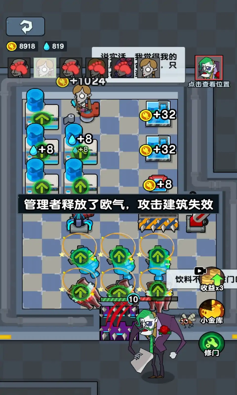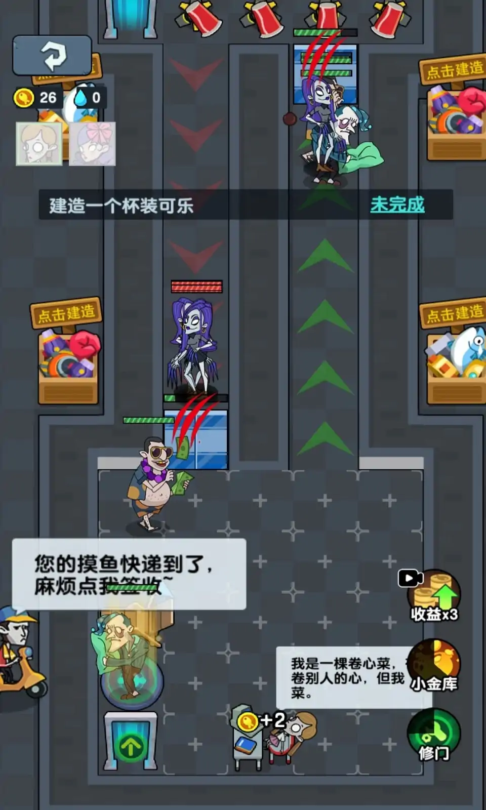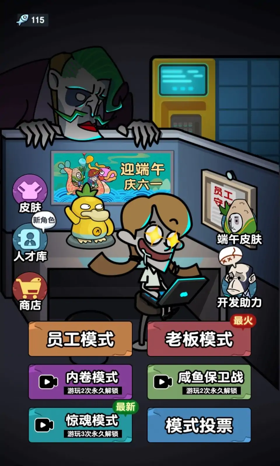 《躺平摸鱼》是一个办公室题材的休闲塔防游戏。 玩家扮演一名喜爱摸鱼的员工。由于交出的方案质量令老板不满意,惹怒了老板。 需要躲进房间关紧房门,建造防御建筑抵御老板的催促。 玩家在游戏过程中可通过摸鱼行为赚取金币,并用于建造或升级建筑。 而老板通过攻击行为也可升级。 玩家需要合理分配资源,建造合理的建筑对抗等级不断提升的老板。 开会了,开会了,老板又要制定业绩目标了。 趁他不注意,你悄咪咪溜出去,找了个会议室打开电脑快乐摸鱼。 “砰砰砰……砰砰砰……”——老板来敲门了,可不能让他发现你在摸鱼。 赶快,赶快!建立你的设施和防线,共同抵御老板吧!