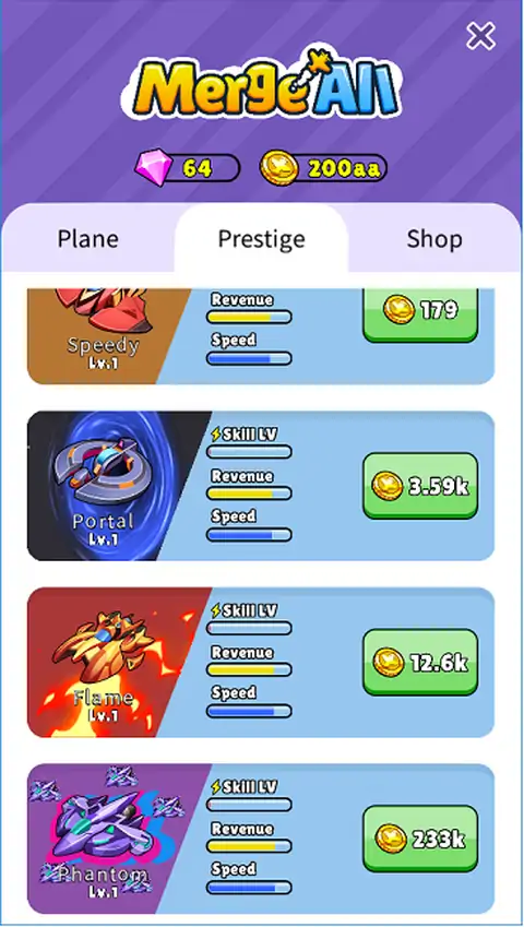 合并飞机,解锁并探索更多神秘感。