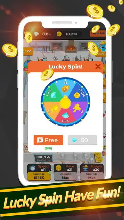 开始锻造你的第一把剑,经营你的铁匠铺吧!你能经营自己的军火库吗?你能成为最好的铁匠吗?熔化金属,锻造成锋利的剑,然后在铁匠店里出售。你卖的剑越好,你赚的钱就越多!你赚的钱越多,雇佣的铁匠就越多,你的手艺就越先进。提升技能,你将成为铁匠大师,获得最强大的剑和武器锻造工艺。如何玩?1.疯狂点击铁匠,让他们工作更快!2.铸造许多酷剑,卖掉它们!3.雇佣更多的工人。4 .提高这把剑的质量,并以更高的价格出售。5 .最后,你将拥有一家大型铁匠铺。有什么新功能?1.简单但令人上瘾的机制。2 .经营自己的铁匠工厂。3 .离线赚钱。锻造最好的剑。你会沉迷于这个铁匠大亨的游戏。你还在等什么?下载并成为铁匠大师!