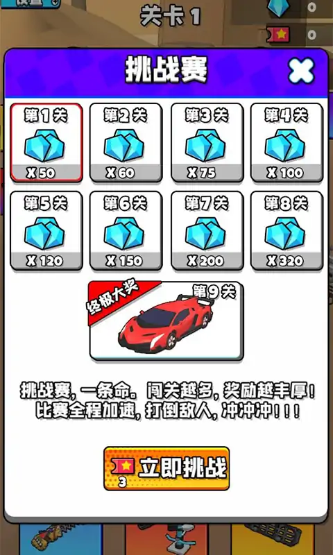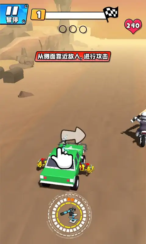 驾驶你的赛车,在山地公路上纵横驰骋。 使用赛车上的近战武器和枪炮,击败遭遇的其他车辆。 胜利可以获得各种奖励,换上不同的装备,组装你的独一无二的热血战车。