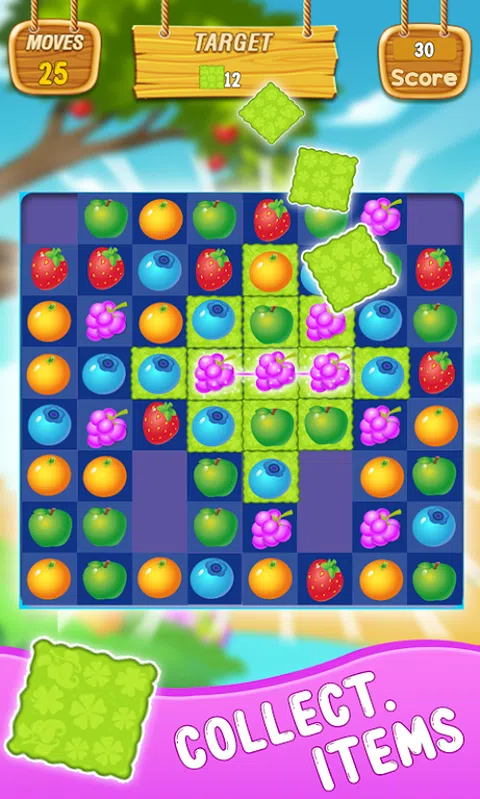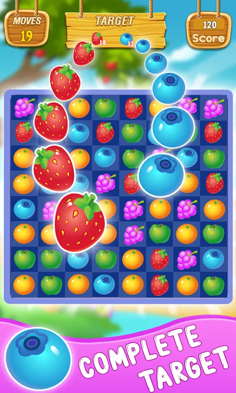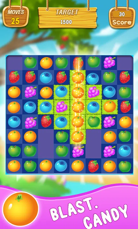 水果链接爆炸 这是非常酷,甜美,美味的UI和酷动画 超过200个具有挑战性的水平和许多游戏道具。火道具可以消除一排水果