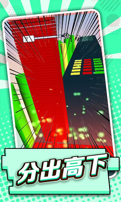超精彩的冒险类动作闯关游戏。随心而动、魔性节奏停不下来。只需要动动手指,就能轻松上手。 在这款游戏中玩家们将会参与到一场叠方块的大冒险之中。你必须要在自己前进的道路上不断收集各种方块,让自己身前的方块越来越高。但是你要注意在前进的过程中总会有各种阻碍,千万要小心避开哦! 观察任务这需要的就是我们的眼力,一定要将颜色相同的放在一起,不然就会失败。 道具对于我们来说帮助还是很大的,想要获得胜利强大的道具是必不可少的。