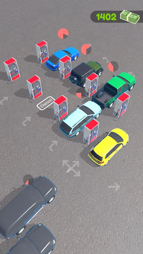 燃油汽车,购买加油站升级,并为更多汽车加油! 加油站管理是将汽车送到正确的插槽,避免排队长时间,花费预算来扩展加油站。简单易于播放,但会以Max测试您的管理技能。也不要让汽车等待太久