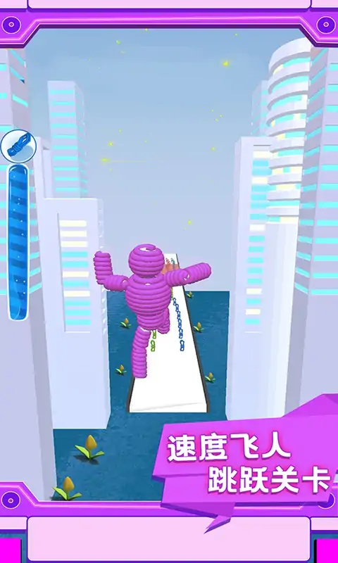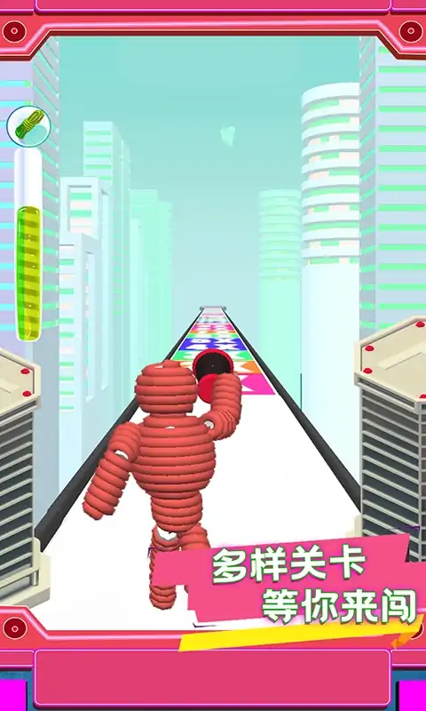 操作绳索人在这里闯关,收集游戏中的绳索,让绳索人不断的变强,只有拾取跟自己同种颜色的绳索才能增加自己的体型,否则绳索人就会不断的变小。小心应对中的挑战,灵活的去躲避危险,撞开面前的所有障碍,并顺利抵达终点。更多关卡等你加入,前方道路中充满障碍,这里每一场游戏都需要玩家认真的应对。