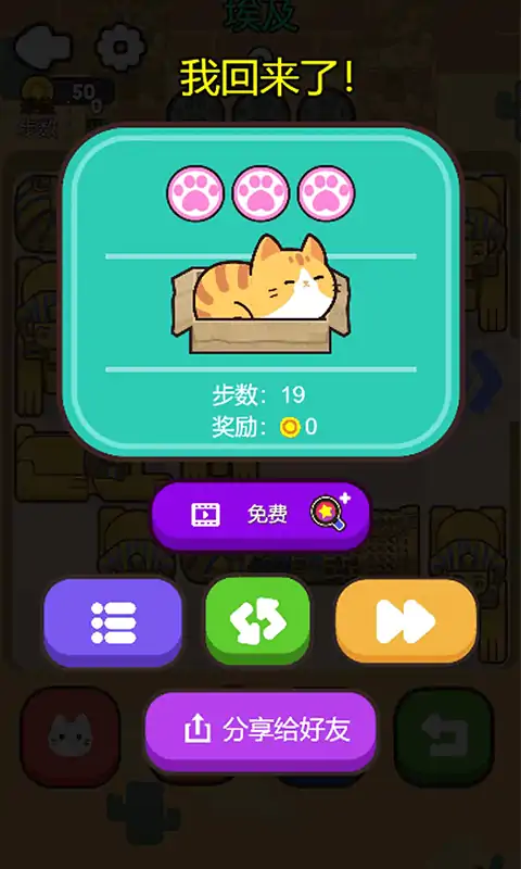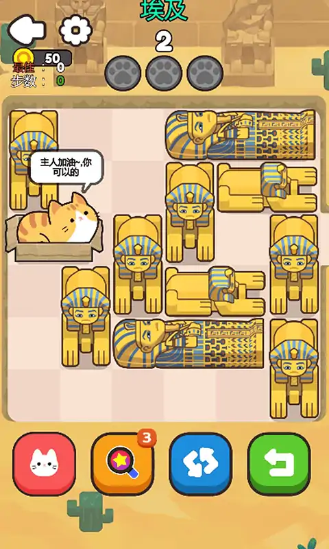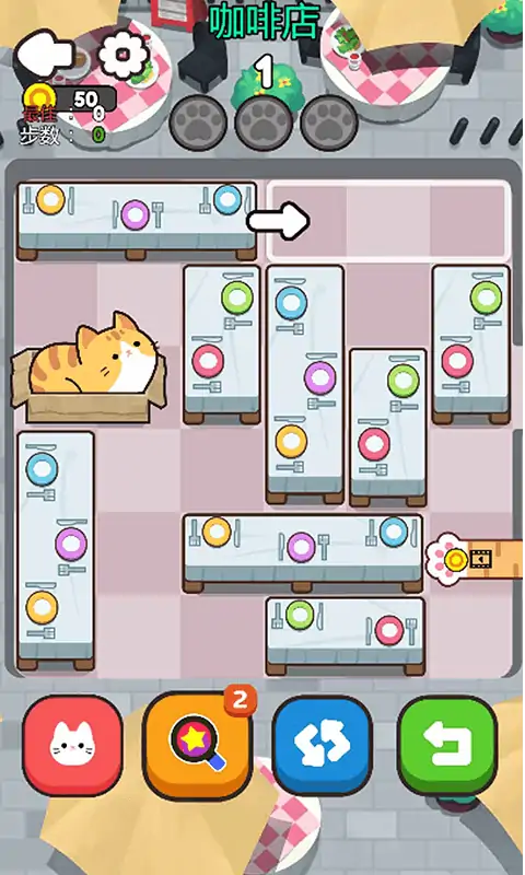 以小猫咪为主题的华容道小游戏,游戏仲有多个主题场景,完成当前关卡进入其他场景关卡,过程主可以获得金币,提示次数等奖励,以及解锁其他猫咪和猫窝