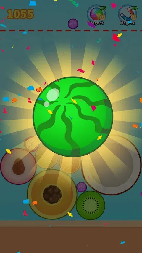 您需要逐步将小水果合并为大果,最后您将获得大型西瓜。 移动手指,或点击屏幕,您可以控制水果的下降点。 让我们看看您可以合并多少个大西瓜