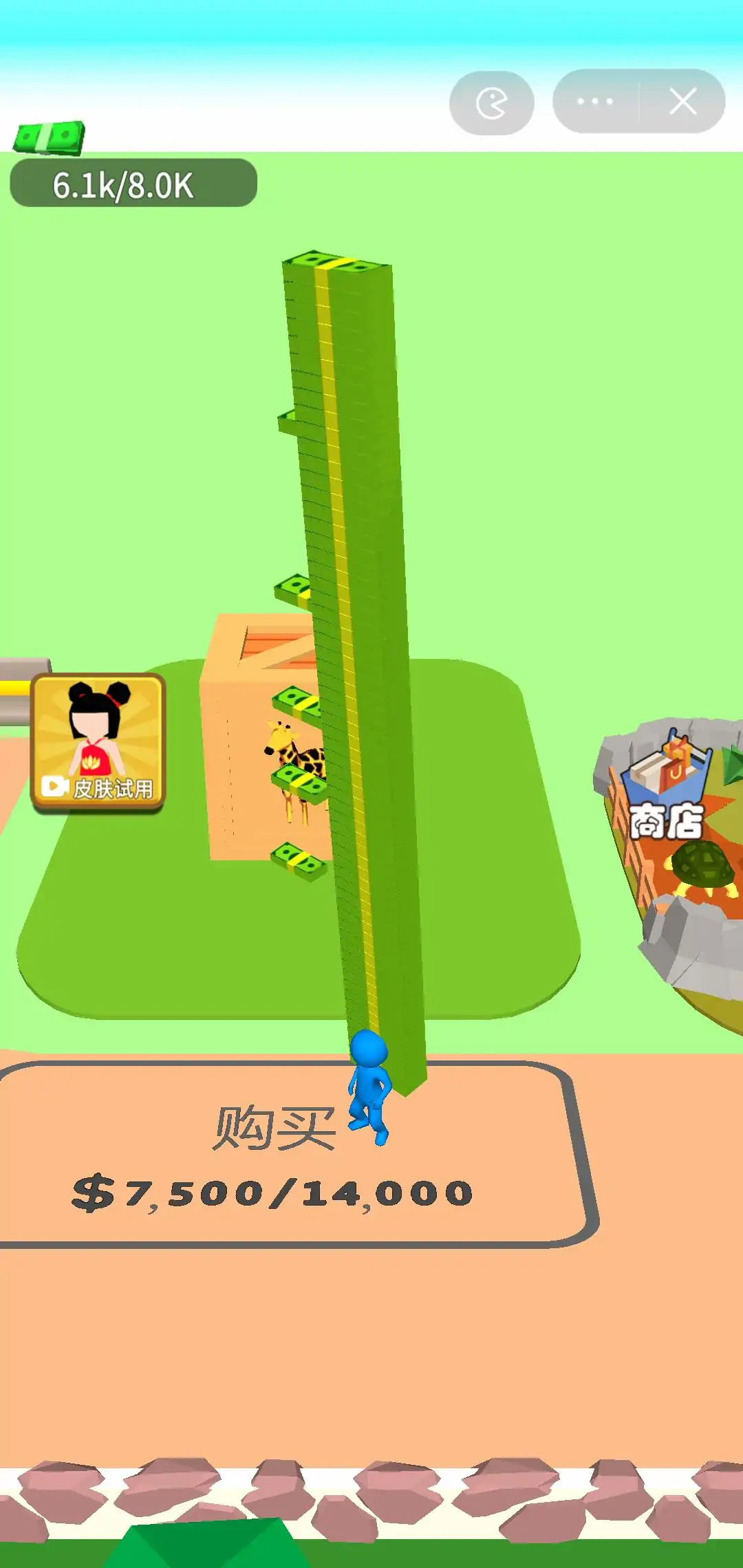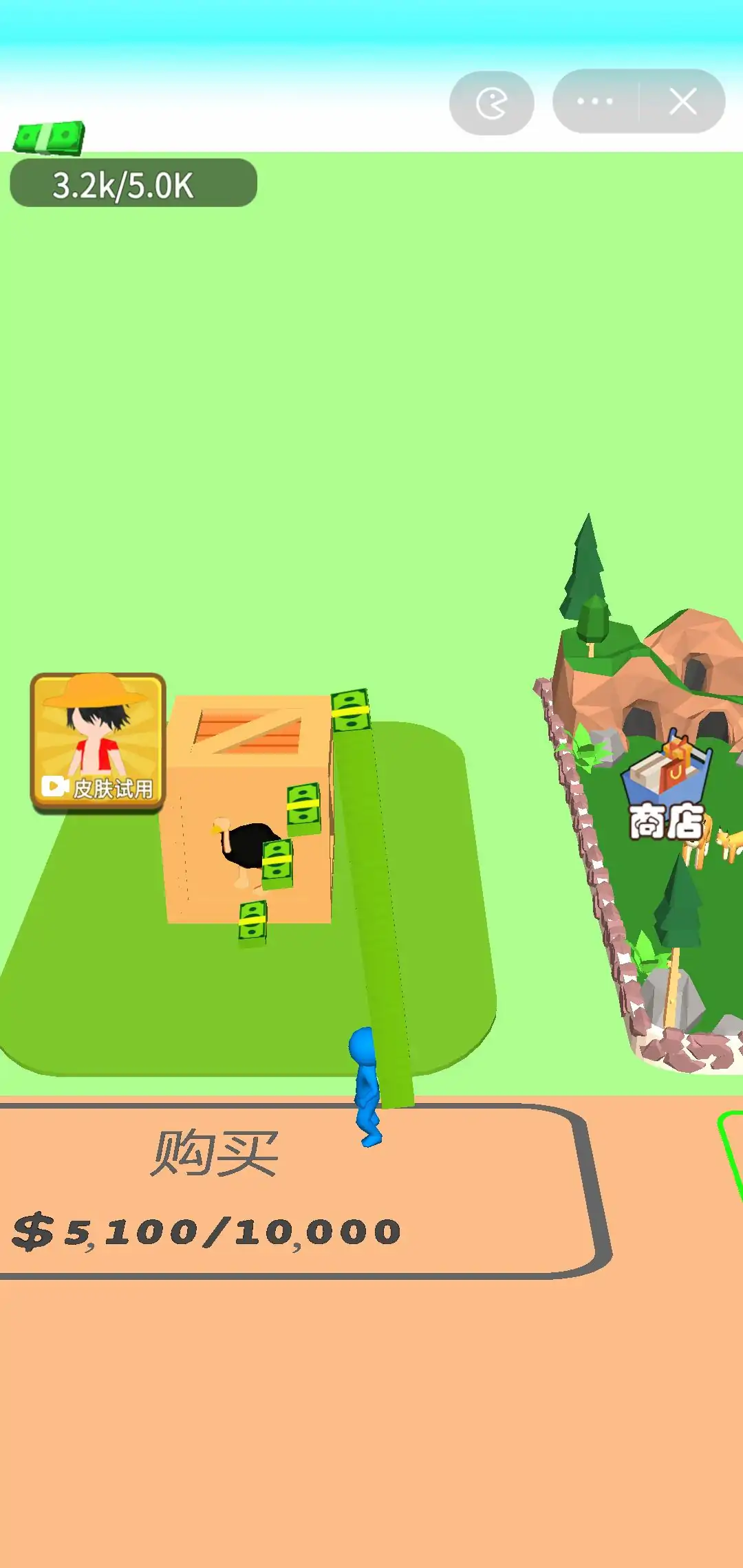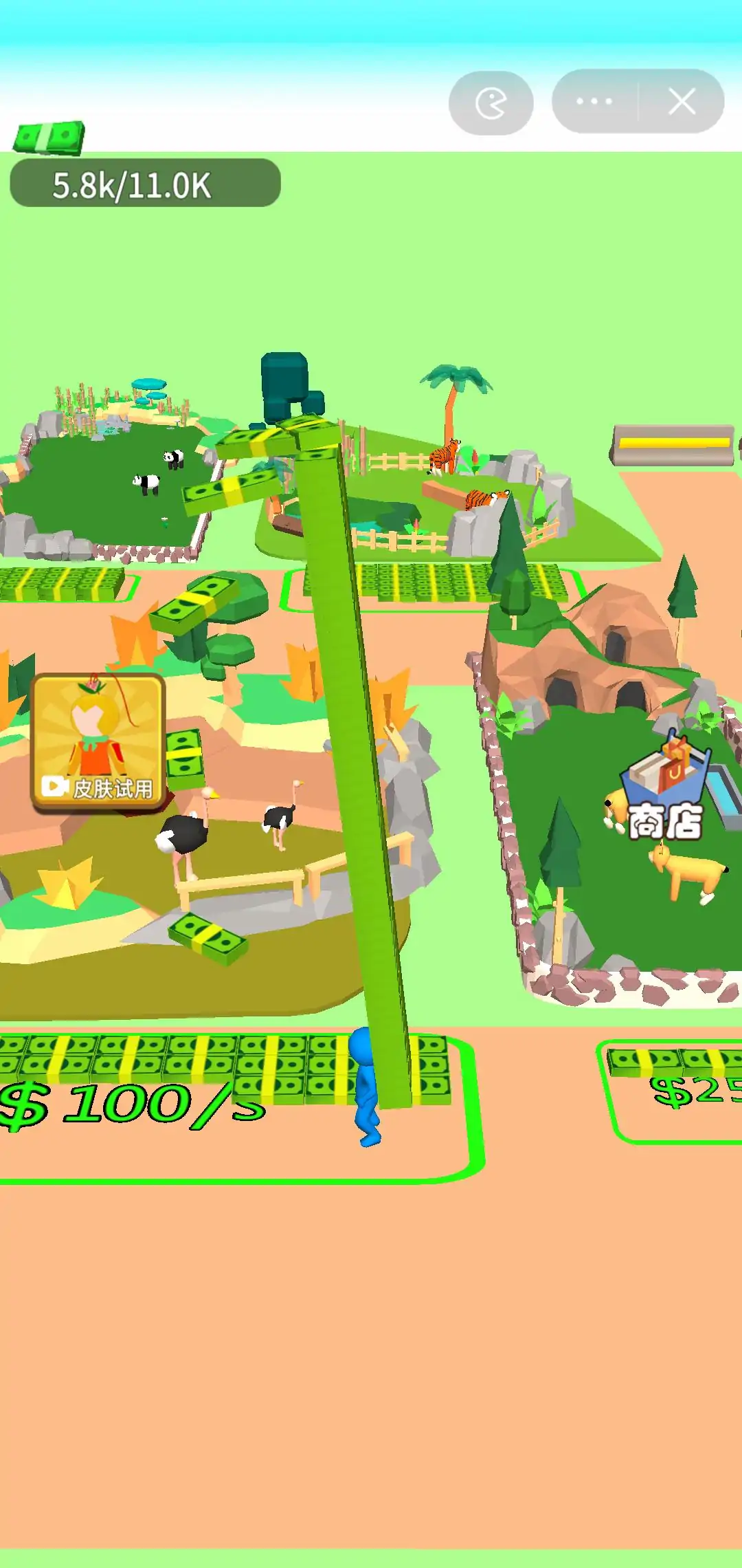 玩家通过拾取钱币,开放动物园区,园区产生的钱币可以用来扩建园区。玩家可以通过钱币升级拾取容量、移动速度以及园区扩建,感兴趣的小伙伴一起来打造属于自己的动物王国吧!