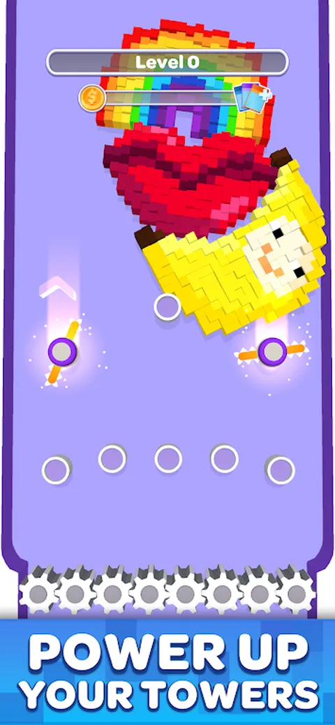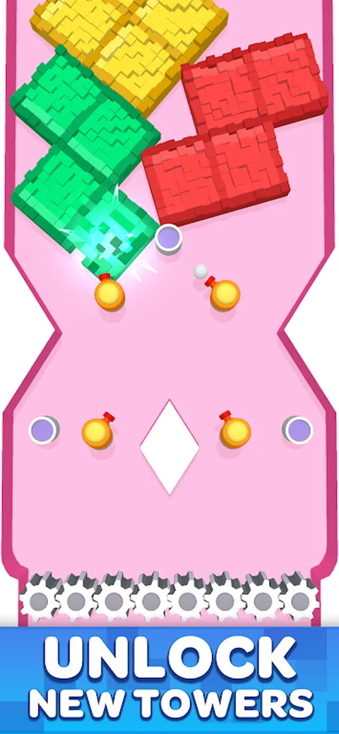 放置你的塔,点击下落的方块将其摧毁。磨碎所有下落的像素,收集金币来升级你的塔,赢得胜利。