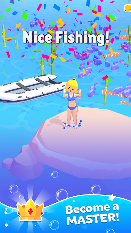 你能钓到金鱼或鲨鱼吗? 立即玩,自己看看! 享受简单、奇特的令人满意的游戏玩法,让夏日的气氛永远持续