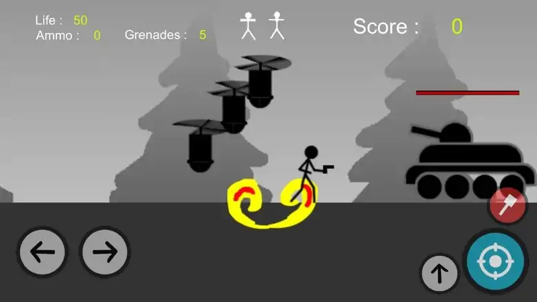 你爱的火柴人的影子人物?你是疯狂的火柴阴影的球迷?欢迎来到火柴枪 - 金属简易控制弹头!在树林战斗比在开放区域更令人兴奋,因为你和你的敌人可以躲在树后面,并进行偷袭。你想体验那一幕?火柴枪 - 金属简易控制弹头是Android上的射击游戏中,你的任务是杀死敌人。在游戏中,你将是这场比赛般的人谁可以移动,跳跃和射击。杀死你的敌人,你受到伤害甚至被杀害之前。在比赛的第一阶段,你是一个火柴人战士用一个短的枪。在那个时候,你只有在你的手中匕首。一个街火柴战斗机。你必须通过每一个战斗收集黄金装备新的武器较强,新项目超级简单,超级上瘾!你不应该浪费时间寻找别人。这里是你雕刻这么长的时间!它只需一拳超人!我们给你带甜,甜动画和无尽的行动基础游戏中的战斗体验。你的目标是打的画中人物的上房波。你可以在某些紧急情况投掷手榴弹。当心你的健康。祝你好运!
