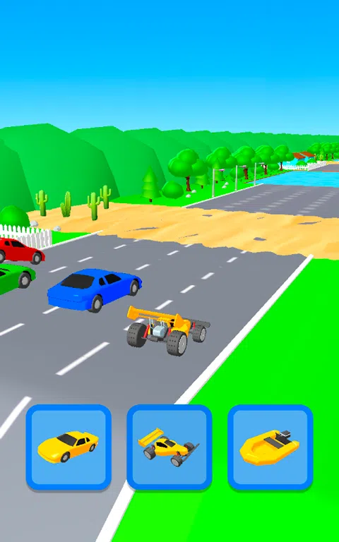 在这场快速而史诗般的比赛中,您需要根据具有挑战性的赛道改造车辆。根据障碍物在跑道上切换赛车。 Shape Transform Race 需要专注和快速的驾驶决策技能。因此,是时候放松一下,享受史诗级汽车的冒险比赛了。有几十个级别的极端障碍,使它更有趣,你永远不会觉得无聊。 为了赢得 Shape Transform Race 快速转移车辆并将它们放在赛道上。有多种具有自己能力的变形车