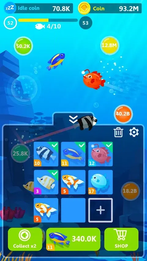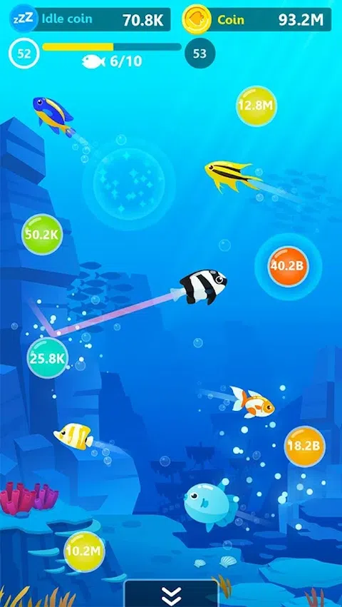 合并以发现您以前不知道的鱼! 击中浮球以收集并提高速度,以便您可以快速合并以解锁所有稀有鱼类