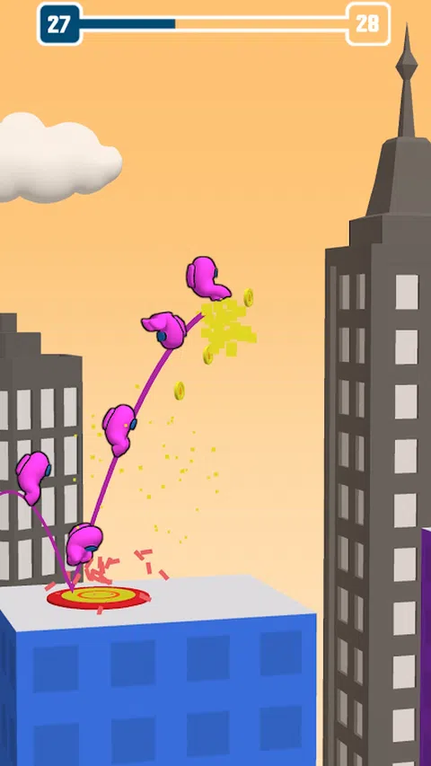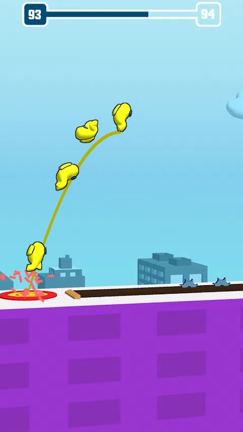 小心!不要从屋顶掉下来! 在屋顶上翻转并聚集人们。 尝试越过障碍