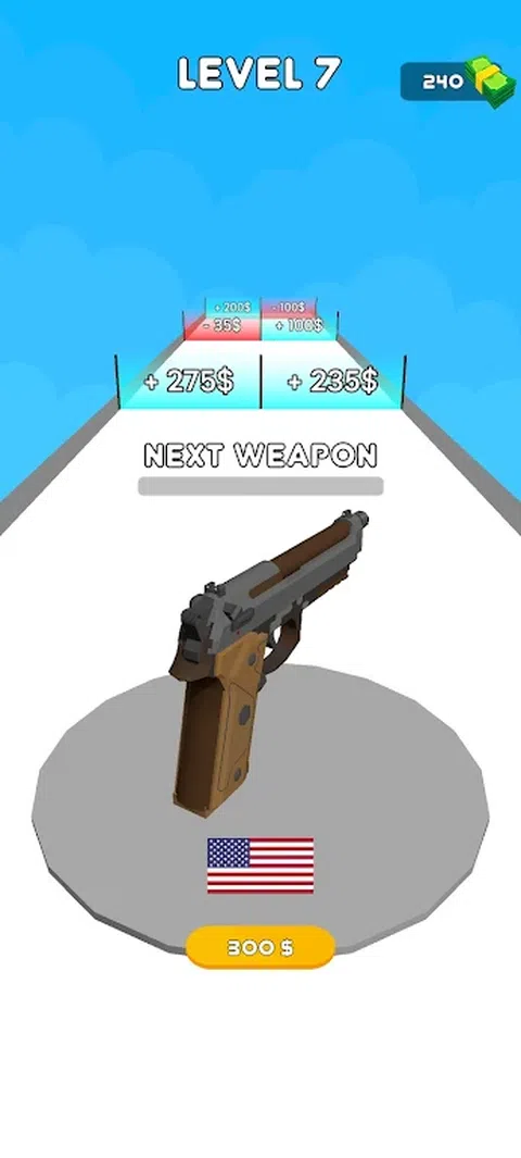 开发你的武器,瞄准最强大的武器! 成为镇上最大的武器收藏家!穿过门,升级你的武器。出售武器赚钱,以提高武器价值和销售价格。保存武器以完成您的收藏,并尝试将其全部收集
