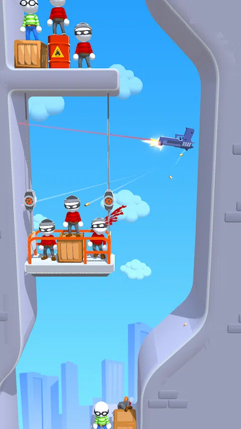 在关卡上营救人质,小心爆炸的桶。按住手指激活慢动作模式并在松开时拍摄