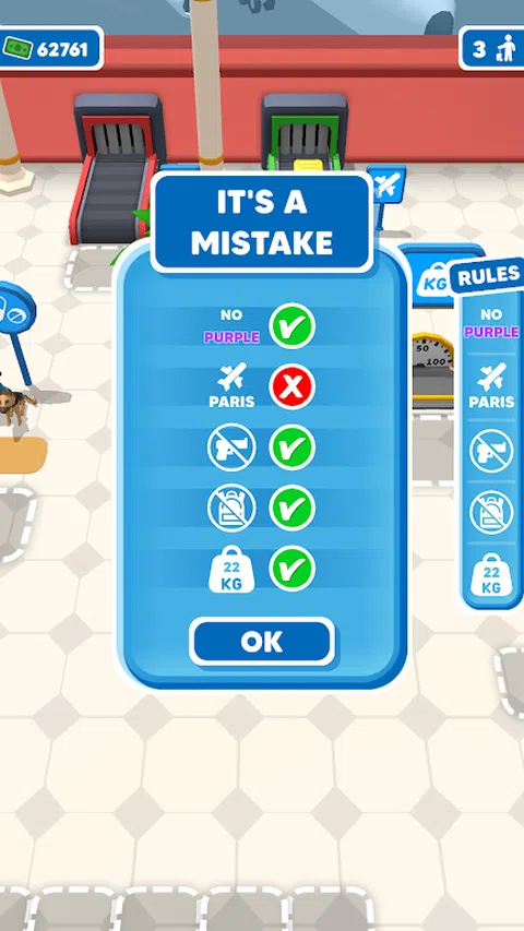 在机场作为行李管理员工作,您的职责是检查乘客提供的每件行李,以确保其符合给定的规则。 每天收什么不改的规定,你要密切关注,一天收的行李,后天可能就收不回来了。 使用通过开发机场获得的资金升级您的机场,并检查许多新机器和功能,从行李重量到检查其中的武器存在。 您还可以选择升级柜台以提高服务质量并吸引越来越多的乘客,这意味着更多的行李和金钱
